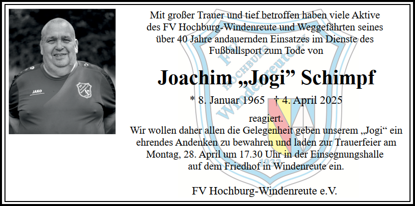 Jogi war seit Jahren Mitglied des FV Windenreute und Teil der erweiterten Vorstandschaft. Wir verlieren mit ihm eine treue Seele, für die der Verein wie eine große Familie war.